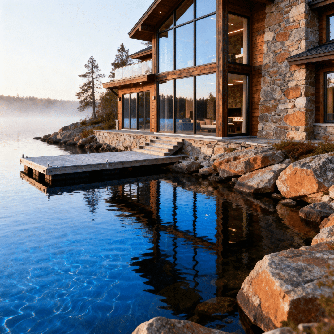 Yes, construction costs on Lake Rosseau are often higher than inland builds. Granite excavation, deep-water marine engineering, estate-scale finishes, and architectural complexity increase structural demands. My Own Cottage conducts early feasibility modeling to align shoreline conditions, zoning limits, and budget expectations before permits are submitted.